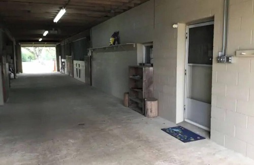 The barn has an additional half bath with a separate large shower room that you may use; it is also used by any campers who are staying at the back pond. The main ranch house is about 150 feet away and has two private complete bathrooms attached to the carport. These bathrooms are accessible to anyone using the property at all times.