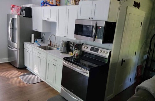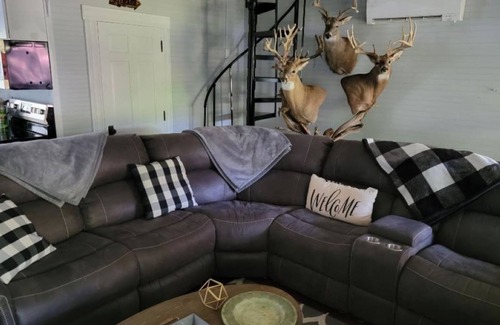 Escape city life and enjoy the great outdoors. This newly reconstructed 1800’s cabin is located on 60+ acres in Woolwine, VA. With 2 bedrooms and 1 full bathroom, there is plenty of room for the whole family. The 2 bedrooms upstairs each have 2 queens beds. There is also 1 queen be located on the first floor to accommodate those who cannot go up/down the steps. There is also a fully equipped kitchen with small table to enjoy all of your favorite home cooked meals.