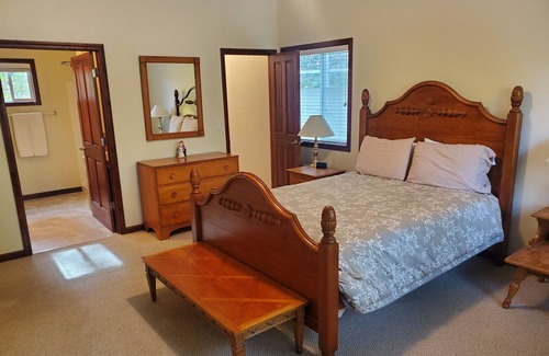 4 Queen Bedrooms, 2.5 Bathrooms, Living Room with vaulted ceiling and huge windows over looking the mountains. Queen Futon in the living room pulls down for even more sleeping room. Cable TV Internet Access with a few apps and youre welcome to log into any of your own of course.