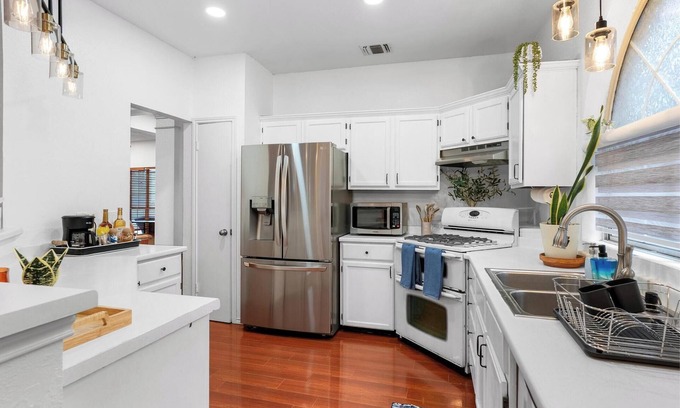 Come and enjoy Austin like a local! This cozy yet spacious residence offers a comfortable retreat for your stay in the vibrant city of Austin. A fully equipped chef's kitchen, plentiful natural light, comfortable bedding and a large outdoor retreat will all make you feel at home in our city.