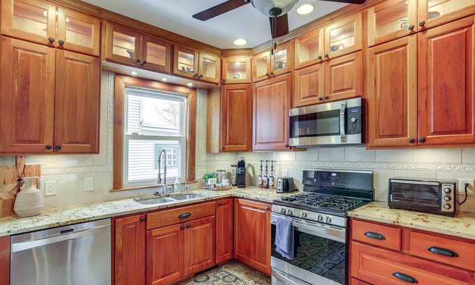 A convenient and inviting stay in the heart of town awaits at this Mansfield, OH, vacation rental. With a well-furnished interior featuring a gas fireplace and wood floors, spacious rooms with sitting areas, and a raised deck with a 4-person fire table, this 2-bed, 1.5-bath home provides a welcoming place to relax when you aren’t out exploring. Hit the ski slopes at Snow Trails, visit the famed Ohio State Reformatory from ‘The Shawshank Redemption,’ or walk the trails at the Ohio Bird Sanctuary.