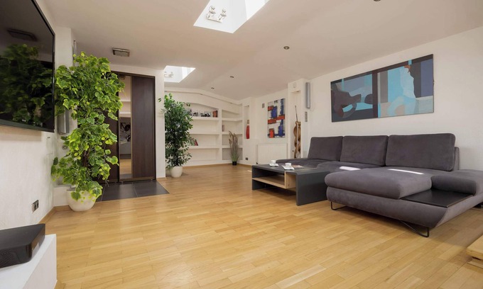 Located in the very centre of Warsaw, this spacious 100 m² apartment offers comfortable accommodation for up to 6 people. The interior has been designed with comfort and functionality in mind, combining modern amenities with a cosy atmosphere. There is a large, bright living room with a comfortable sofa and a flat-screen TV, which is an ideal place to relax and spend time together. The independent kitchen has been fully equipped with essential appliances such as a fridge, hob, oven, dishwasher, kettle, coffee maker and a set of dishes and utensils, allowing you to prepare meals in a homely atmosphere. The two bedrooms, decorated in a warm, atmospheric style, offer comfortable beds and an additional seating area in the form of a sofa, ensuring a peaceful and restorative sleep. A spacious bathroom equipped with a bathtub and shower, washbasin, toilet, washing machine and hairdryer provides full comfort for daily use. The apartment is decorated in a light, muted colour scheme interspersed with colourful accents, giving the interior a pleasant and homely feel. Free Wi-Fi access and cable TV enable both remote work and entertainment. The location in the very centre of the city guarantees easy access to the most important tourist attractions, restaurants, cafés and public transport, making the apartment an ideal choice for both a short stay and a longer holiday in the capital.