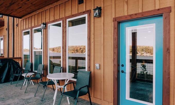 As you round the shoreline, the stretching waterfront landscape will catch your eye as you approach the parking lot directly in front of the lodge (Yes! There is ample space for a trailer!). You will use a keyless lock system to enter your cabin.