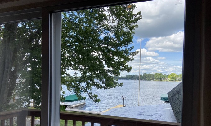 Mother In-Inlaw studio apartment above our garage. Great weekend get away, small but functional. Great fishing on lake just 40 ft away. Includes use of dock or hoist on all sports lake Ponemah near the Shiawassee river inlet. Rental includes the use of 2 stand up paddle boards and 1 kayak and a few water floats and life vests. The suite has a small balcony over looking the lake and has king size bed and a trundle bed and a full size couch. Kitchen area has full size refrigerator, coffee pot, toaster/oven and electric frying pan and a fold out kitchen table and chairs. The lakeside deck has a table and chairs. Perfect spot to watch the sun set.. outdoor small table top grill is available by request and pontoon to rent for an extra fee.