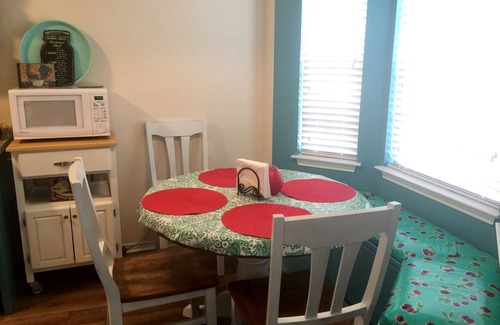 Come and enjoy Amarillo Casita on the shores of Cypress Creek. The location is just a short 1.5 miles to downtown Wimberley, yet is a world of its own. Swimming, fishing or just floating in the cool waters of the spring fed creek takes away all stresses and worries, and the comfortable and fully equipped cottage offers all the creature comforts you desire. There are 2 bedrooms, a queen and king size bed, one bath and a fully equipped kitchen. Enjoy a morning cup of coffee on the back deck or sit in the adirondack chairs by the creek. Dinner is best enjoyed on the deck overlooking the creek. Romance is in the air. Come and see the magic of Wimberley and Cypress Creek.