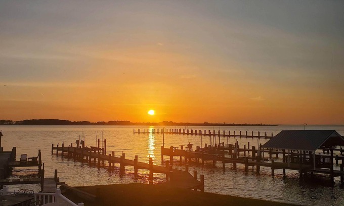 What is special about this house is that you can see both sunrise and sunset on the water from both inside and outside of the house. The house is located on the Chesapeake bay with beautiful almost 360-degree water views. Water can be seen from almost every room and bedrooms. There is a spacious wrap around deck that will let you enjoy the beautiful views of the water. House is located right across from Hart- Miller island. A short trip on kayak or boat will give you access to the island. There is a hot tub on the deck that you can enjoy while surrounded by the beautiful view of the water. The house has a large beverage cooler that is located in the bar area. Please bring your own beverages. House has its own elevator that makes it very convenient to access all 3 floors. Sit back and enjoy your getaway.