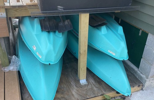 Beautiful 3 bedroom water front property. This property comes with 4 kayaks that are included in the price of rental. This home has everything you will need pots, pans, blender, air fryer, waffle maker, 3 queen beds, very comfortable sectional, and a door wall to the deck to enjoy dinner looking at the water.