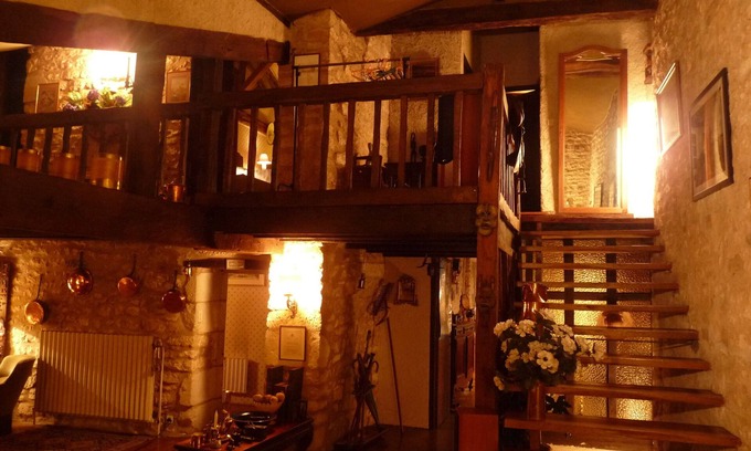A water mill in the Poitiers countryside by the river with a turn wheel 280 m2 of living space, 5000 m2 of wooded garden, 7 km away from Poitiers, 10min away from Futuroscope, 1h away from the Loire Castles, 1h30 away from La Rochelle. Beautiful interior and exterior setting, quiet, equipped kitchen, 4 bedrooms, 1 bathroom, 1 shower room, Internet connection, Hi-Fi equipment and television.