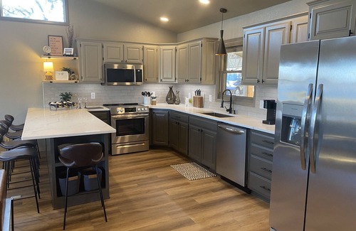 Downstairs is a bedroom with queen bed and updated full bathroom. There is 2nd bedroom with queen bed and a 3rd bedroom with queen bed and pull out sofa. This room is the kids hang out that contains 65" TV, gaming equipment, board games and cards. The 2nd & 3rd bedrooms share another updated full bath.