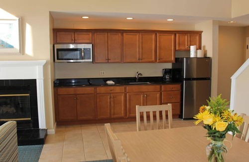 Property is one-story condo that sleeps 4. This timeshare has a master bedroom, bathroom, plus an eat-in kitchen and living room with pull out couch, TV, and fireplace. There is a deck off of the unit as well as tons of beautiful common space both indoors and outside at the resort.