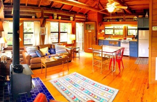Lake Wood Cabin is an updated Historic one-bedroom log cabin with a new kitchen, New Windows, wood stove, deck overlooking Lake Lucerne, and only 2 miles to downtown Eureka Springs. Parking for one car is provided. The Lake Wood Cabin at Lake Lucerne has been restored to preserve the iconic history of the 1930s cabin. It is beautifully decorated and maintained. The cabin does have modern amenities such as Wi-Fi, and an updated kitchen.