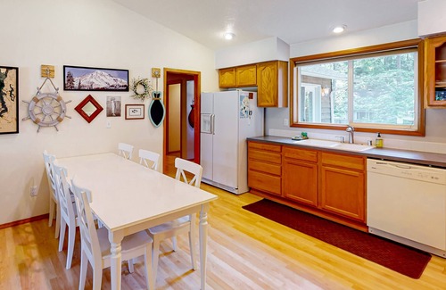 The main home is furnished for contemporary comfort, with features including a full kitchen and a private washer/dryer. Convenient kitchen additions also include an instant pot, crockpot, griddle, and toaster oven. A variety of games, children's toys, board games, a Nintendo Wii console, and plenty of DVDs provide endless home entertainment for all ages. Teens and younger guests will love having their own space in the separate bunkhouse.