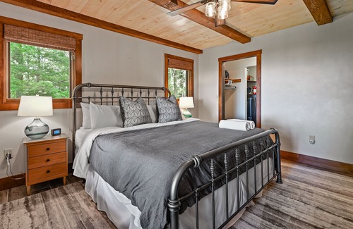 Water view on a bluff- Bay side with hot tub is located in Sturgeon Bay. Water view on a bluff- Bay side with hot tub provides accommodation, featuring Bedding/Linens, Spa, Fireplace/Heating, among other amenities. This Cabin features Bedding/Linens, Spa, Fireplace/Heating, to make your stay a comfortable one.