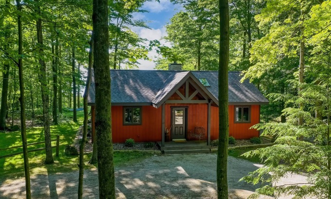 Panoramic sunset views from the top of a bluff overlooking the bay of Michigan. This property is private, wooded with gorgeous hardwoods and birch tress, and fully stocked for you. We love to pamper our guests and give them the best vacation experience. The outdoor space provides a stone firepit overlooking the bluff and offering a fantastic oasis to sip Door County wine and watch the sunset or even enjoy the daytime views nighttime sky filled with stars. The back porch is covered and great for grilling. Inside you have a cozy setting all your own, with a large master bedroom offering view of the lake from the king sized bed, washer/dryer, and attached bathroom. The main space is updated and upgraded with a fully stocked kitchen, open concept living space with electric heat as well as a wood burning stove to keep you nice and warm even on those cold Wisconsin winters. This property is 15 minutes north of Sturgeon Bay, 8 minutes south of downtown Egg Harbor and a few minutes drive to the Rusty for Breakfast, or a delightful coffee shop right in Carlsville. Property is fully cleaned top to bottom between bookings, and full stocked with blankets, pillows, dishes, and much more.