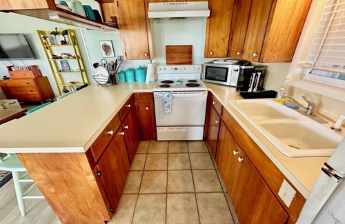 Welcome to the Definition of Ahhhhhh! Jetty Joint has the most unique views-unless you are on a boat out on the bay, it's hard to get this scenery! Fun in the sun on the deck, corn hole to play, conversation, writing a book, family get-a-way, corporate respite, beach down the street, fishing, whatever your reason for POC the Jetty Joint is a must. This is a two bedroom home - one with a private suite where one bedroom is inside the main house and the other is right outside opposite the main door. There is a couch with pull out bed converting this cozy rental from function to utility and a place for all. Note the water comes right up to the slab on a high tide but IS NOT DOCKABLE FOR BOATS.