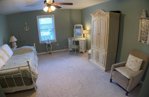 Across the street is the closest swimming beach where there is a swim platform. The beach is situated on Almshouse creek off the South River. The pier, near the beach, offers a fishing and crabbing platform. Bait shops are nearby and we can supply a couple fishing poles or equipment to crab off the pier.