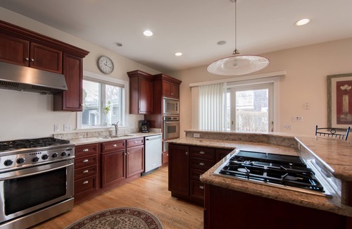 This home offers spectacular views and sunsets over Easton’s Bay, Cliff Walk, Easton’s Beach and the Newport Bridge from the front porch or the 2 decks. With 3000 sq. ft of living space, 4 bedrooms, 3.5 baths, a state-of-the-art kitchen, an open Kitchen/Dining plan ,and central air, you will find everything you need for a vacation getaway. There is also a separate 1 bdrm/1bath cottage available if you need private quarters for guests. Whether you are visiting for a special occasion or just taking some well-deserved vacation time with family, this property will meet all of your needs. Quiet, yet located close enough to amenities, most everything is either a quick walk, bike or car ride. The house is located a mere 3-5 minute walk to Easton’s Beach. Grab the wagon for your gear and you will be relaxing in no time on Easton’s Beach. If it is Sachuest Beach or a quieter “3rd” Beach you prefer both are a 2-3 minute car ride. And of course for the more adventurous you can ride your bikes to any or all beaches. If it’s a meal and cocktail you are looking for, look no further than Flo's Clam Shack, The Atlantic Grille, Diego's Bodega , Tickets Sports Bar, Aquidneck Pizza, and several other restaurants and pubs within walking distance.