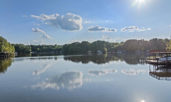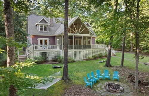 Step outside, and the fun really begins! The private dock is ready for your boat or jet skis, while the kayaks, paddleboard, and canoe are perfect for exploring the lake. Prefer to stay on land? Challenge your crew to a game of cornhole, take a nap in a hammock, or drop a line in the water for some fishing. When the day winds down, rinse off in the outdoor shower with hot water, then gather around the fire pit for s’mores and lakeside stories.