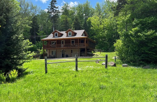 This eco-friendly log cabin located in the heart of southern Vermont conveniently borders the Mount Snow Resort and Green Mountain National Forest. Next to the cabin, a cold water stream rushes down exposed bedrock into a shallow pool. Disconnect from the noise of daily life and relax to the sounds of the waterfalls from within the screened porch while taking in views of mountains and foliage. A long driveway with pond located midway ensures a quiet and peaceful retreat surrounded by nature, while also providing easy access to mountain resort activities, nearby town trails and restaurants.