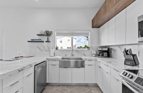 Private, modern coastal home where guests can enjoy the serenity of water views and canal access for boating. This 1,652 sq.ft. home has 4 bedrooms, 3 bathrooms, a spacious living area, and a modern kitchen layout. Guests also have a full-sized washer and dryer available on the second floor. Enjoy your morning coffee on the large balcony overlooking the water. This property offers space to store a boat and has access to a nearby ramp. Unwind on the patio by the fire-pit or the relaxing swings after grilling your fresh catch of the day. Located in a quiet neighborhood near John Pennekamp State Park which offers a beach, exciting water sports, and excursions. If you don't feel likecooking, don'tworry! This property is conveniently located near many local favorites such as Jimmy Johnson's Big Chill and Sundowners.
