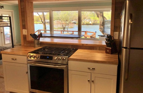 Come on out to Lake LBJ! You will feel right at home from the moment you pull into the carport until you have to leave. Our cozy, 2000 sq ft home has 4 sleeping areas (2 BR are KINGs); 2 baths, large living/family area, a HUGE back deck overlooking the yard and open access to the cove. Our covered upper seating area allows for a fully shaded option when you are outside, and the trees overhead keep the rest of the deck mostly shaded during the heat of the day.
