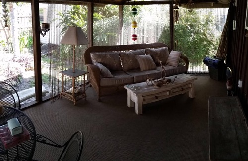 From the Dinning area inside you can exit through a sliding door to the Screen Porch to relax with your coffee. This area also features a small table and 4 chairs if you enjoy eating breakfast and drinking your coffee outdoors.