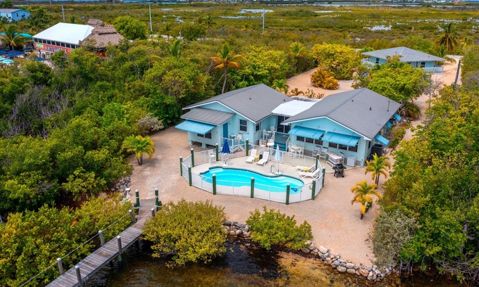 Stay in the amazing Keys and beautiful waterfront home with 200 foot dock for your boat. Exclusive heated pool to relax and enjoy the surrounding ocean view - just breath taking! The private lot is almost an acre with another home not rented separate (search for Barry Beach & Guesthouse for both homes). Stunning panoramic water views, sunrise, sunset, steps from ocean water. Bring or rent fishing and snorkel gear nearby to fish off the dock and enjoy the underwater scenery!