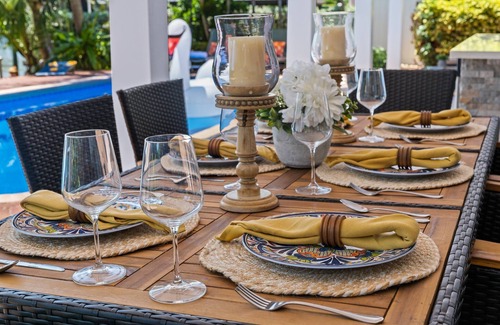Our outdoor kitchen, complete with a BBQ and tiki bar, is a foodie's dream. And speaking of kitchens, ours is fully equipped and even includes a Keurig coffee maker for your morning brew. Ahh, can you smell the coffee?