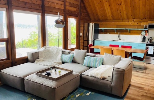 Prime 4th fireworks viewing spot!!! Waterfront cozy cabin on the Burton Loop! Newly updated cabin with 1 bed, 1 bath on main floor and upper loft space with 2 queen beds. Retro styling in an open living/dining/kitchen space. Large deck overlooking Quartermaster harbor plus additional gazebo and fire pit for outdoor relaxation. Cabin is on private 2/3 wooded acreage. Walking distance to Jensen point where you can put your kayaks in and across street from hiking trails in the Burton woods! This cabin is the perfect base to explore the beautiful island of Vashon, and to truly relax and escape.