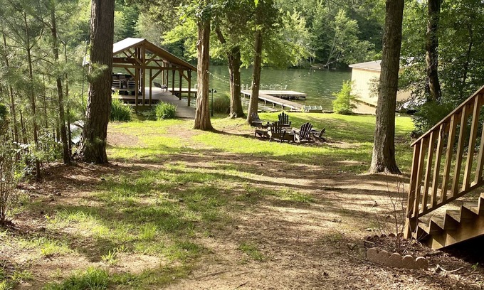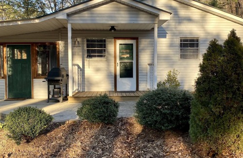 This is a 2 bedroom, 1 bath cabin on the lake WATERFRONT. Located on the main channel. It is close to the bat cave, the fireworks, and Guntersville Dam. This property is back in the woods. A real 'Uncle Buck' Summer camp feel. Trees everywhere! Awesome ride back. Serine. 50' off the pier it is 10' deep water. The inside of the cabin is remodeled to a rustic tone with a lot of cedar! King bedroom has a new (June 2024) 50 inch TV. 42' plasma for TV in the living area. Brand new refrigerator (April 2021) Satellite Internet. Cell phone service varies from carrier to carrier. Cove is smooth for skiing or inter-tubing. Area is great for fishing. Great for Canoeing. Canoes, kayaks, are 'RENT FREE'. New Washer and Dryer onsite (June 2025). Big deck on the back. Charcoal grill. Hardwoods and tile. No carpet. Great neighbors. Plenty of parking. A fire pit perfect for s’mores! Recently added boathouse to cover your expensive bass rig! Power at the pier to charge. Over 200 5 star reviews! More than anyone on vrbo!