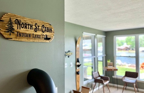 **Our cabin is now Blue! New exterior photos posted for 2025 season, also the cabin is directly on the lake as shown in the photos** Enjoy our waterfront cabin with friends and family on the lake with a hot tub! Our place is a must stay - wake up and enjoy wall-to-wall water views, partake in some fishing or kayaking and have a relaxing evening by the fire. Bringing your boat or renting one nearby? No problem, you’ll have a private dock to use. No matter the time of year you’ll find everything you need at our getaway on the lake!