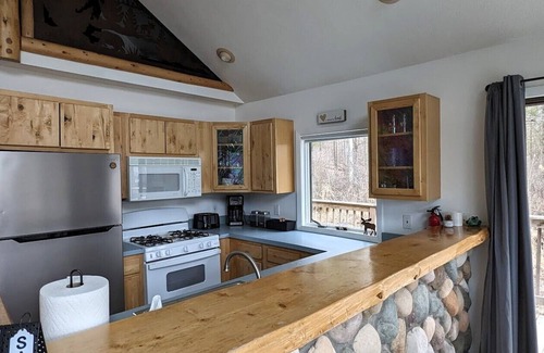 KITCHEN: Cooking basics, dishware & flatware, gas stove, oven, microwave, toaster, drip coffee maker, dishwasher, trash bags, paper towels