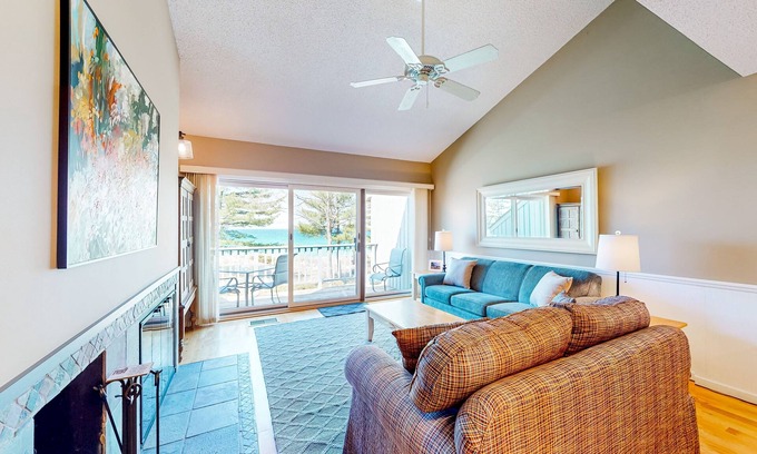 Waterfront condo near skiing with beach access, on-site golf & fireplace | Condo in Glen Arbor
