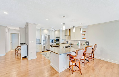 At home, you’ll love the one-level, open layout, perfect for entertaining and spending time with family and friends. Start the day with coffee and end it with a spectacular sunset on your enormous enclosed lanai, with a view of boats entering and leaving the marina. The full, well-equipped kitchen features stainless steel appliances and plenty of counter space for meal prep, and everyone can eat together at the large dining table or pull up a barstool for a casual snack. Spend the day exploring, or just head to the community pool to soak up some sun close to home. In the evening unwind with a little TV or post the day’s pics to social media with the free WiFi while the central air-conditioning keeps everyone cool. Call it a night in one of three well-appointed bedrooms, and drift off to sleep dreaming of tomorrow’s perfect vacation day.