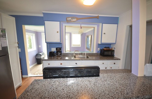 The living room, adjacent to the kitchen, features a smart TV with Direct TV. Off the kitchen on the lakeside is an enclosed porch area, perfect for morning coffee. There are 2 bedrooms and 1 bathroom. Both bedrooms have a queen bed. Sheets and towels are provided. Step out the porch door to a spacious deck with an ideal area to relax and grill. There is also a separate laundry room. One well-mannered pet is welcome.