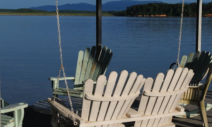 •Huge, covered, private boat dock, with a large patio area, rocking chairs, swing, table, swim ladder, and covered boat slip for up to a 22’ boat. Bring your boat, skis, tubes, kayaks, canoes, and water toys! If you don't have a boat or jet ski, you can rent one 2 minutes away and have it delivered to our dock.