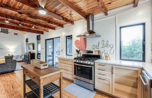 The home includes two cozy bedrooms, each designed for relaxation and comfort. The primary bedroom boasts a king-size bed and an en-suite bathroom, providing a private retreat. The second bedroom is upstairs and equally comfortable, ideal for guests or children, and has easy access to the second full bathroom. There's also a deck off the 2nd bedroom with lake and hill country views!