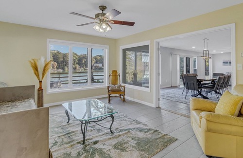 Paws & Reflect is not just a house; it's a picturesque dream come true. The back of the house showcases large picture windows that frame breathtaking views of the tranquil pond and river. Imagine waking up to captivating sunrises, sipping coffee on your private dock, and watching boats as they gracefully glide along the river.