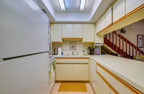 KITCHEN: Stove/oven, microwave, dishwasher, refrigerator, dishware/flatware, 4-person breakfast bar, Keurig coffee maker, electric kettle, toaster oven