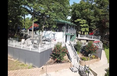 Small bungalow that sits right on top of the water. We want you to enjoy this house as much as we do. If you love to spend time outdoors and on the water, then this is the place for you. House has multilevel decking overlooking the cove on Lake Eufaula. 2 bed and 1.5 bath. The house is small (900 sq ft) and there is 5 beds total { 2 queens, 1 bunk bed, 1 sleeper sofa}. You can sleep 6-8 people based on how close you are with your group. lol the second bedroom is rather small and mainly used to sleep. The outdoor living space and view of the water is why you want yo stay here.(4 decks over 2000 sq ft of living space) You have access to the dock where you can tie your boat in the slip and keep it there during your stay. It is directly connected to the decking of the house. There is a screened in porch that is nice to relax in late at night. There is also a firepit on one of the decks. You can sit and enjoy the views all day without even getting on the water. There is free wifi available. The house is pretty small so it is not suitable for big groups. Click on the video link for a quick tour of the property