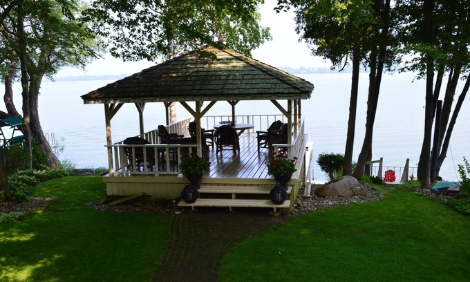 Bliss is a 5 bedroom waterfront resort style "home away from home" with every possible comfort for you and your family to enjoy. The cottage has been custom designed to provide spectacular views of the West Lake sunsets from inside. Shielded from the elements, the covered gazebo provides peace of mind while you take in the sights and sounds of nature. Alternatively, cool off in the shade under the tree canopy as you immerse yourself in this tranquil waterfront escape.