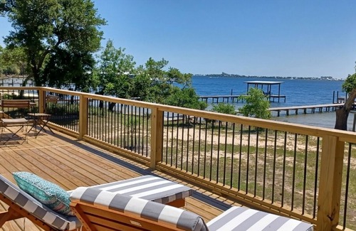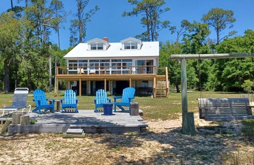 This home is only available for rental to families. It is a treasured family home located on eight acres of wooded property wandering up to a spectacular 300 feet of sandy beach on Arnica Bay. This is our second home and has been in the family for more than 40+ years. We are pleased to share it with other families. Families will enjoy quiet quality time spotting deer, dolphins, herons, pelicans, ospreys and bald eagles that live all around the property. Overhanging live oaks provide shade for chilling out on the beach. The 300 ft private beach has a clean sandy bottom with a gradual slope, perfect for swimmers of all ages. A large private dock provides the perfect location for boats (8 ft water) fishing, setting crab traps, tossing cast nets or just catching the breeze or enjoying magnificent sunsets.