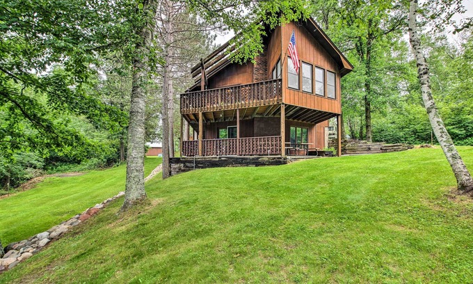This uniquely beautiful home sits right on the edge of Wood Lake, where a plethora of lake activities await! With 3 bedrooms, 1.75 bathrooms, and accommodations for 11 guests, this Fifty Lakes vacation rental boasts prime amenities, includes a 3-season porch, deck, patio, fire pit, wood-burning fireplace, 4 kayaks, 2 paddleboards, and more! Spend afternoons barbecuing on the deck while breathing in the fresh lake air or exploring the area’s exciting fishing or golfing!