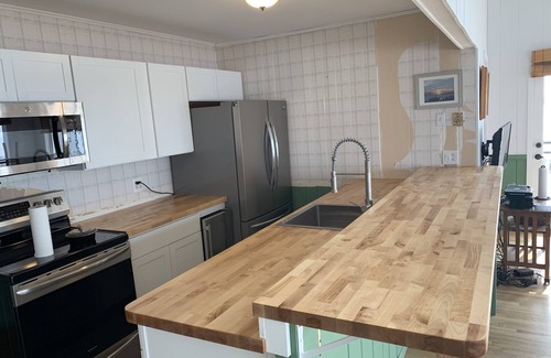 This is a newly renovated beachfront house in the Ocean Ridge section of Davis Park with breathtaking views of the Great South Bay, a gorgeous sandy beach and huge decks for relaxing. The deck is great for relaxing and watching the water and watching Sunsets. The house has a stairs that go right down to the bay. Perfect spot for kids to play in the water, go a little further out front and catch your own clams . for those of you with your own boats , jet skis, ect you can come right up to the house unload and anchor right out in front of the house depending on how much water your boat draws The ocean beach is a short 5 minute walk away sandy and the perfect spot for the kids to play. ( no life guards tho.. although there is a Town beach a short walk away that is life guarded) This house has everything that you need for a great beach vacation. a newly installed Fujitsu air conditioning system that gives every room its own unit and thermostatic control , for those looking in the fall or in the early season the house also has heat There is a master bedroom with a queen size bed and full bathroom, guest bedroom 1 with a full size bed, bedroom 2 with a full size bed,bunk-beds plus bathroom, bedroom 3 with a full-size bed,bunk-beds and a sleeping loft with more beds . 4 full bathrooms with plenty of room for everyone.