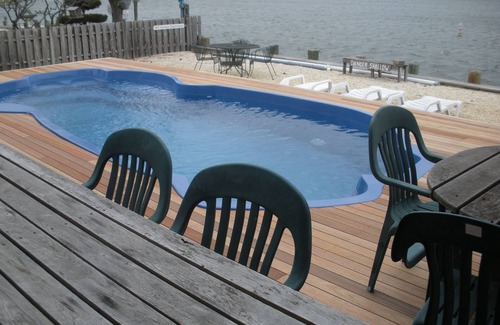 Wonderful, Pet Friendly, five-bedroom, bay front home in Loveladies, New Jersey, on quiet Holly Drive. Unobstructed view of Barnegat Lighthouse. Five-minute walk to life-guarded ocean beach. Seven blocks drive to fenced children's bay beach. Beach badges, wireless web, chairs, linens and towels included. Interim cleaning service for two week rentals. New heated pool surrounded by large new waterfront deck.