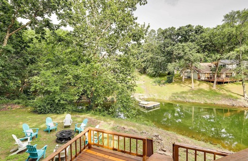 Imagine yourself relaxing around the fire pit with loved ones at this spacious waterfront home on Monkey Island! This 4-bedroom, 3-bathroom Oklahoma vacation rental features Smart TVs, a fireplace, and picture windows with a waterfront view. Rest outdoors on the deck to listen to the sounds of water or head inside to cozy up. Challenge friends and family to billiards or foosball in the game room. Check out Shangri La Resort just a few miles away or visit one of the local museums for some fun.