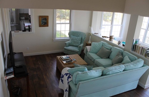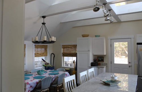 The Wharf House – with its many windows and skylights -- is light and airy (with a vaulted ceiling in the kitchen and dining area) and has a modern open interior design.