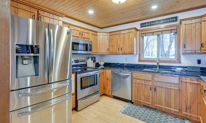 Immerse yourself in everything Holcombe has to offer at this 3-bed, 2-bath vacation rental! This home offers a deck overlooking the water, a patio, Roku TVs, and more. Explore Pine Point County Park, tee off at Twin Oaks Golf Course, or play at Perkinstown Winter Sports Area. Afterward, relax in front of the fireplace with a board game.