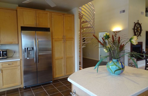 The home has Hughesnet Sattelite WiFi for checking mail, central heat and air, washer/dryer, gourmet kitchen completely stocked with everything you need but your food (including upscale appliances-gas stove and a convection oven). There are ceiling fans and televisions in all bedrooms (5 HD LED flat screens in total). Master suite opens out onto the upper deck. The master bath includes the laundry, a jacuzzi tub, bidet, and spacious walk-in closet.