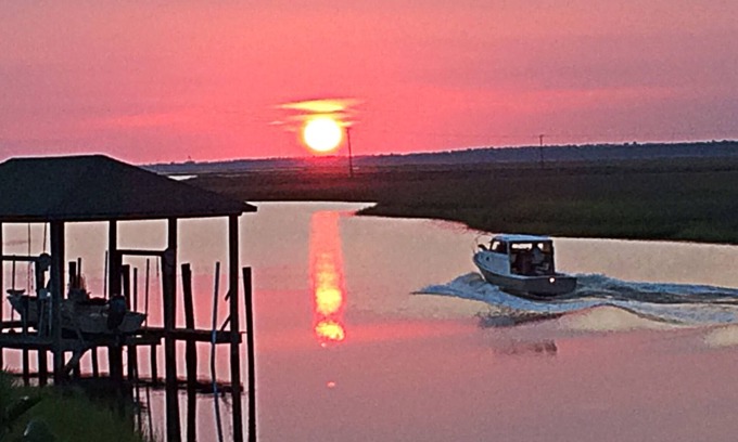 This home quietly sits on Bayou Arcadia with beautiful views of the bayou and miles of marsh. Full boating access with private boat launch. Large deck with outdoor seating, swing, and table. Sleeps 6 Master bedroom with king size bed and beautiful views. Master bathroom includes custom walk-in shower. Second bedroom with queen size bed and day bed with trundle. ( One twin size XL and one regular twin size mattress ) Guest bathroom includes tub/shower combo. Full kitchen, washer dryer and fireplace. Hammock and barbecue downstairs. Covered parking under the house. Private boat launch. Two piers, plenty of crab traps and fishing off the piers if not bringing your own boat. Small tacklebox and 2 rods provided. Two kayaks and a canoe with paddles and life jackets also provided (require agreeing to release of liability for use) Very secluded and safe area. Hulu TV, Wi-Fi , Netflix included. Approximately 2 miles from the beach by car. Approximately a 10 minute boat ride out the bayou through the bay and into the Mississippi Sound/Gulf. Great fishing. Great escape. Plenty of nearby restaurants. Casino with spa and golf nearby. Owner locally available for any assistance. Children welcome however should be fully supervised due to open water and second story. Makes for a great fishing camp or just a romantic couple's getaway.